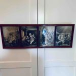 Underbar tavla med 4 bilder på ung dam som träffar sin blivande man, gifter sig och får barn.
