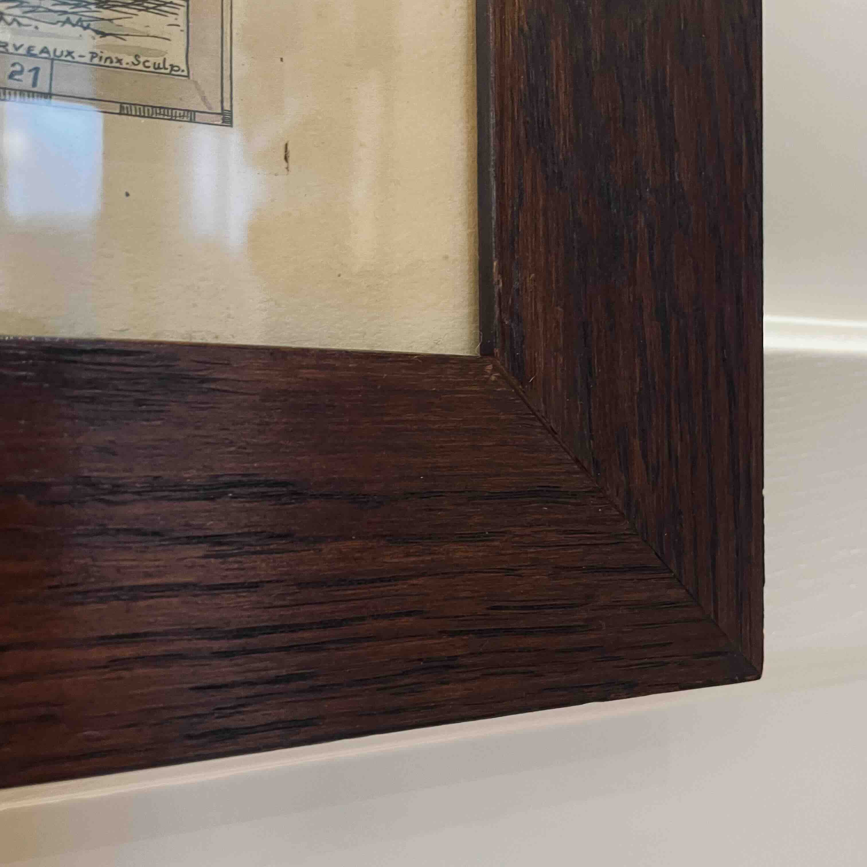 Underbart äldre tryck i tjock träram. Bladet är inte helt slätt mot glaset och det finns något litet veck på pappret.