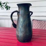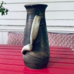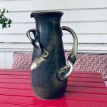Vacker unik drejad keramikkanna. Mycket dekorativt handtag!