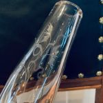 Fin glasvas - tjockt glas - med vackert etsat motiv.