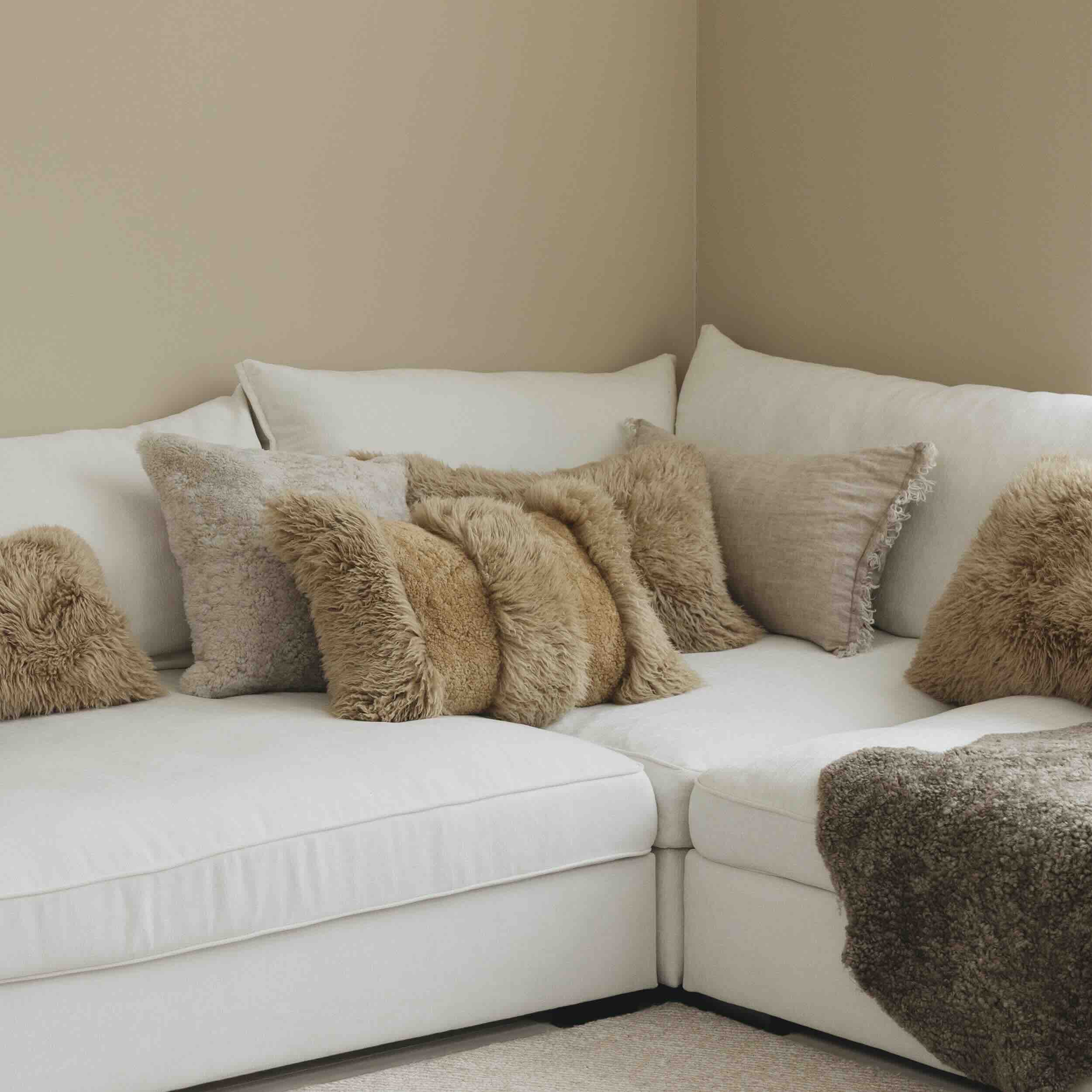 Kudde Dune, i långhårigt lammskinn och korthårigt fårskinn.