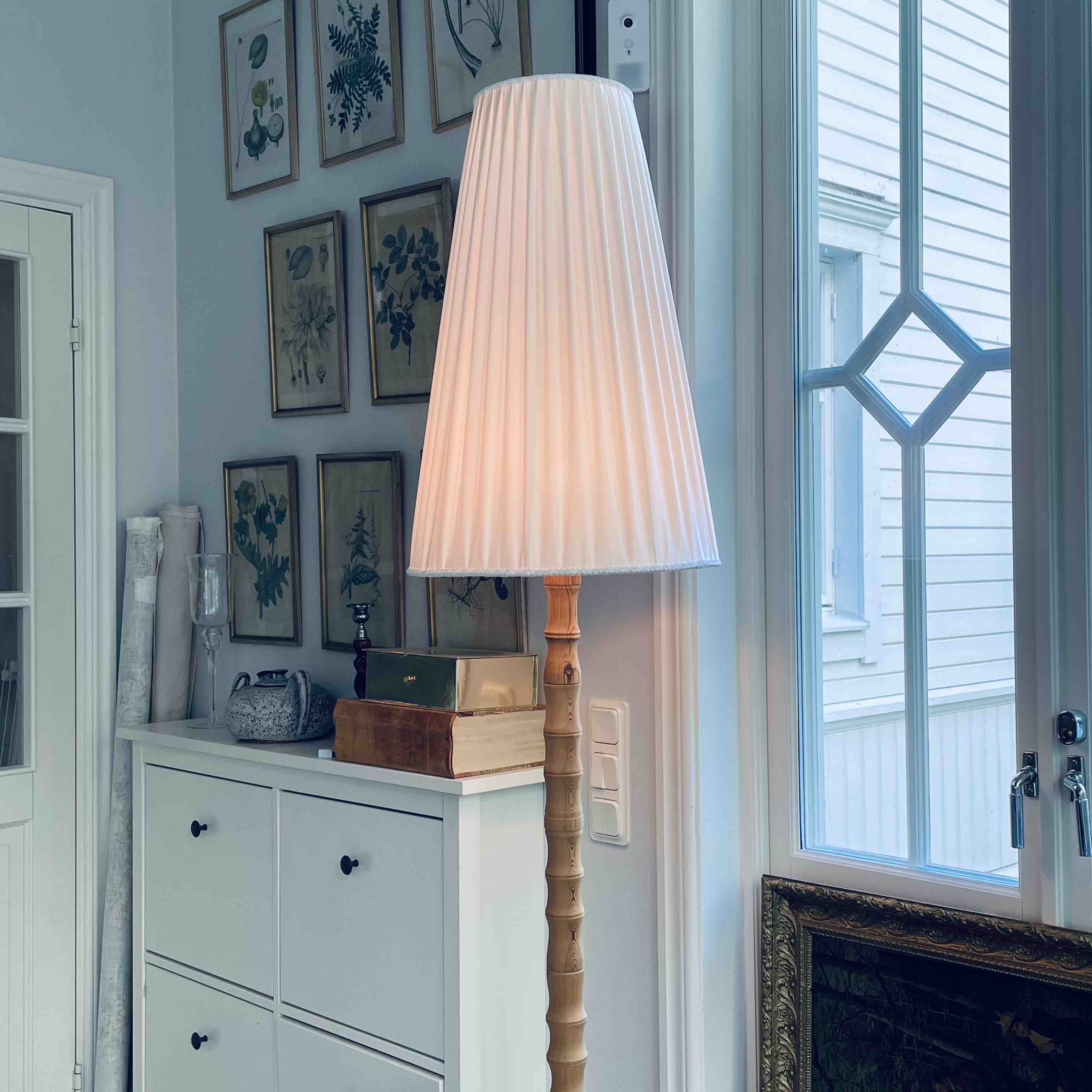 NYHET: Här presenterar vi en mycket fin lampskärm i avlångt format, som till exempel passar utmärkt till din stora höga lampfot från Tilgmans Keramik från 50-talet. Givetvis passar den till andra större lampor också, t.e.x. som här på bilden på en golvlampa i trä. Finns bara att beställa hos Aprilia Interiör efter vår egen design.