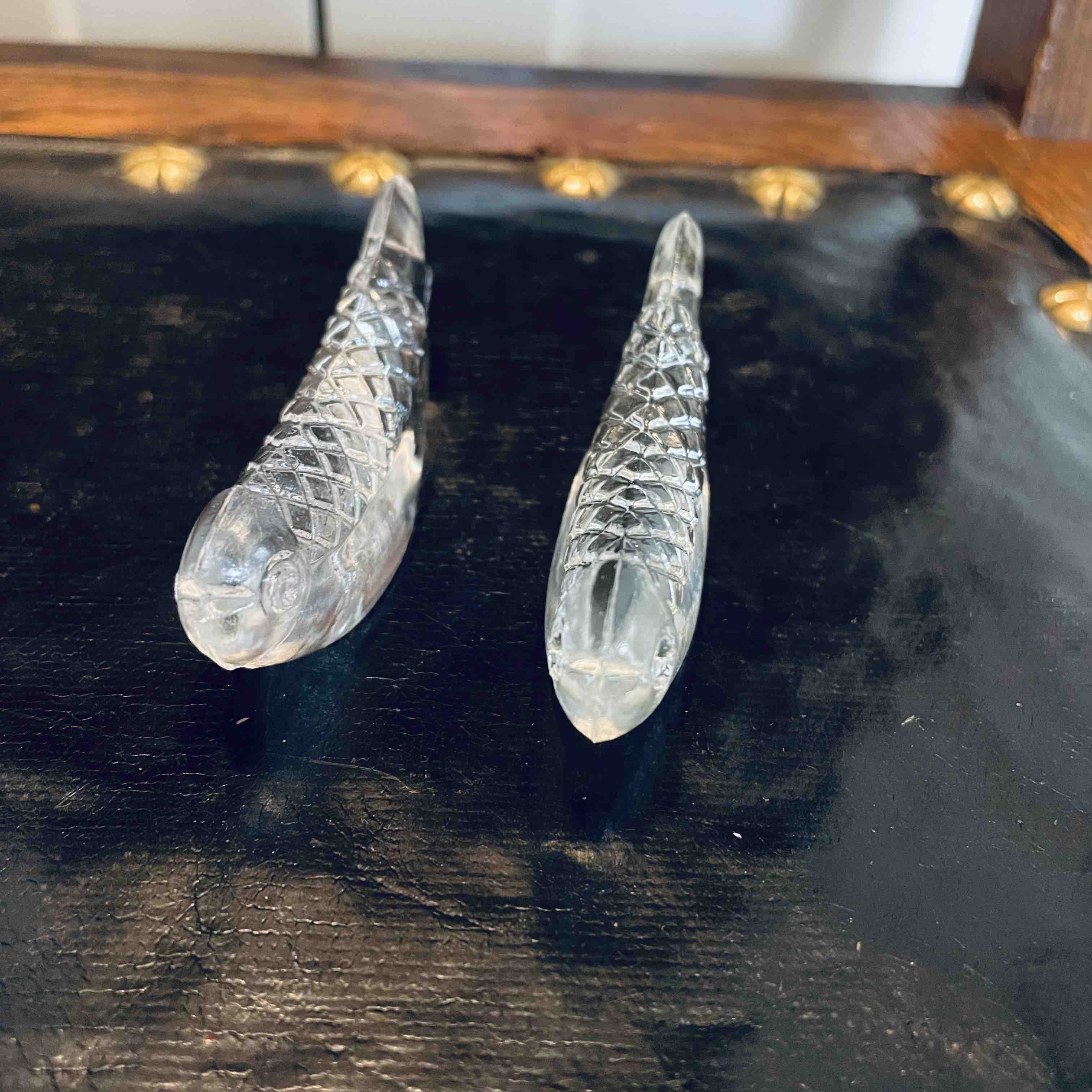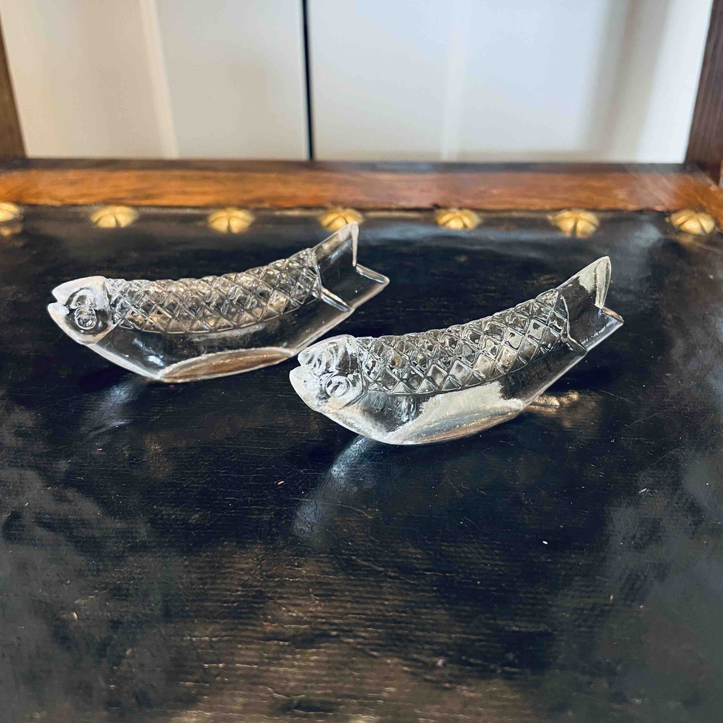 Set med 2 stöd för smörkniv - glasfiskar Antikt - Under 50 kr