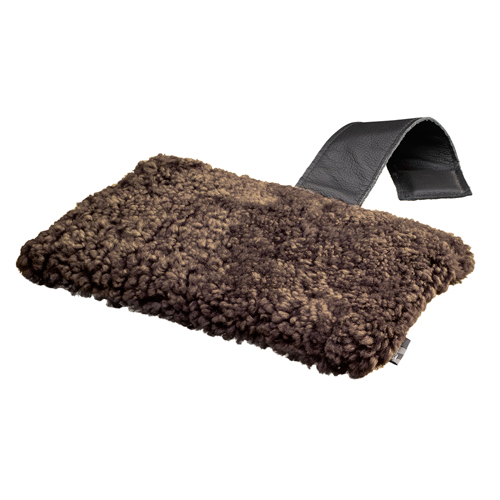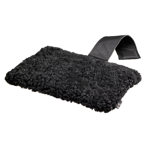 På baksidan hänger en tyngd, vilket innebär att du ej behöver fästa kudden i fåtöljen, utan enbart hänga den över ryggstödet.