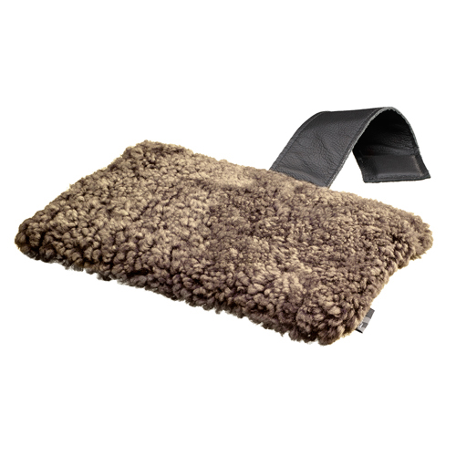 Framsida Fårskinn. Baksida PU (konstläder). På insidan ligger en tunn fiberspring.